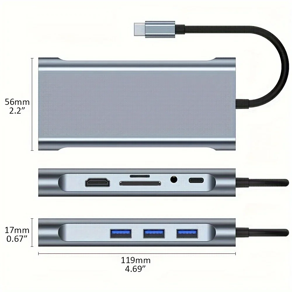 10-in-1 USB-C hub with 4K HDMI, USB 3.0, and fast charging. Expand your connectivity and boost productivity with one compact device.